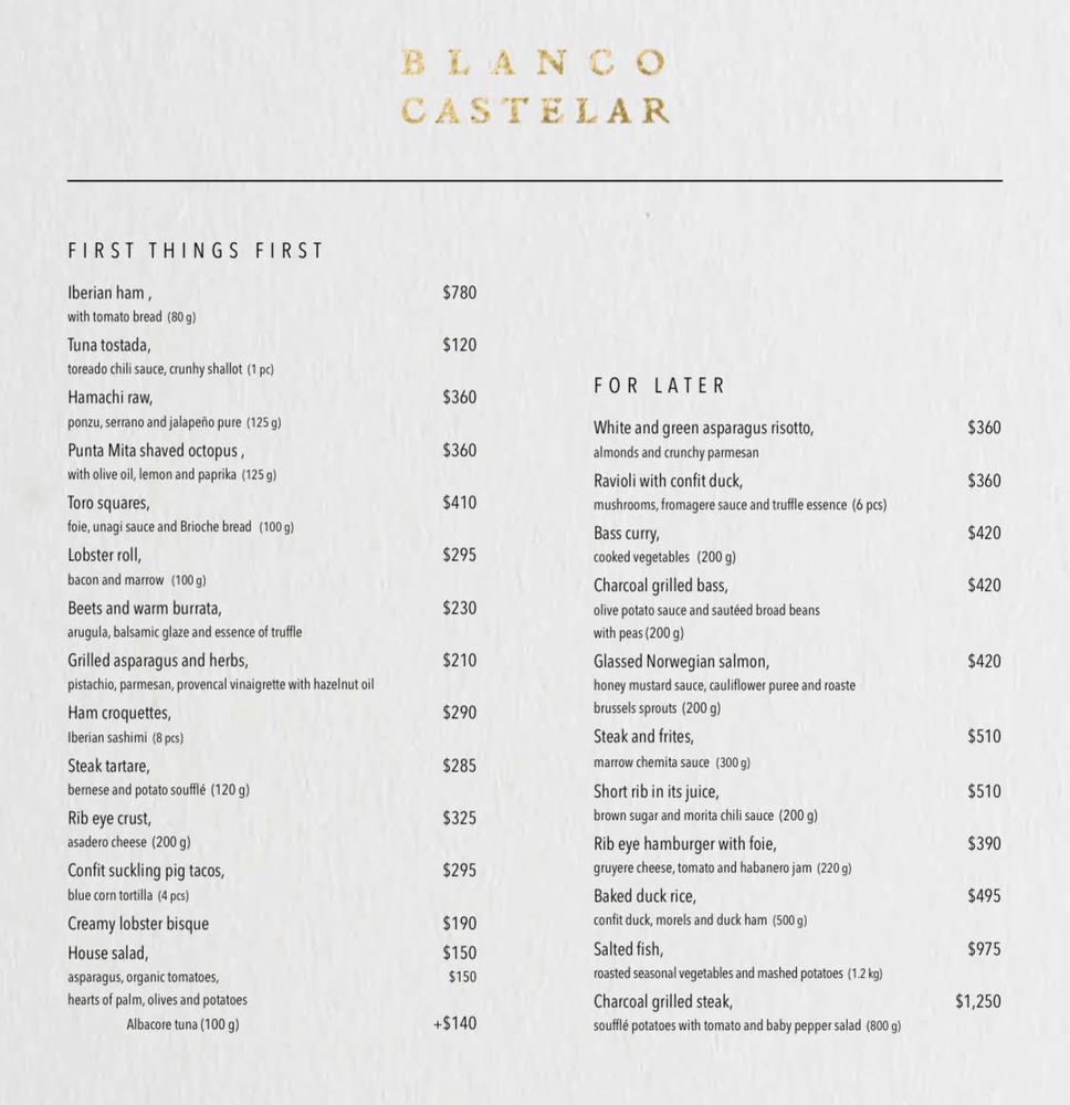 Welcome to Blanco Castelar, a culinary gem nestled in the heart of Polanco, Mexico City. Set in a charming converted house, it offers an inviting ambiance that seamlessly blends elegance with comfort. The moment you step in, you’re greeted with a delightful drink at the entrance bar—a perfect prelude to the culinary journey ahead.